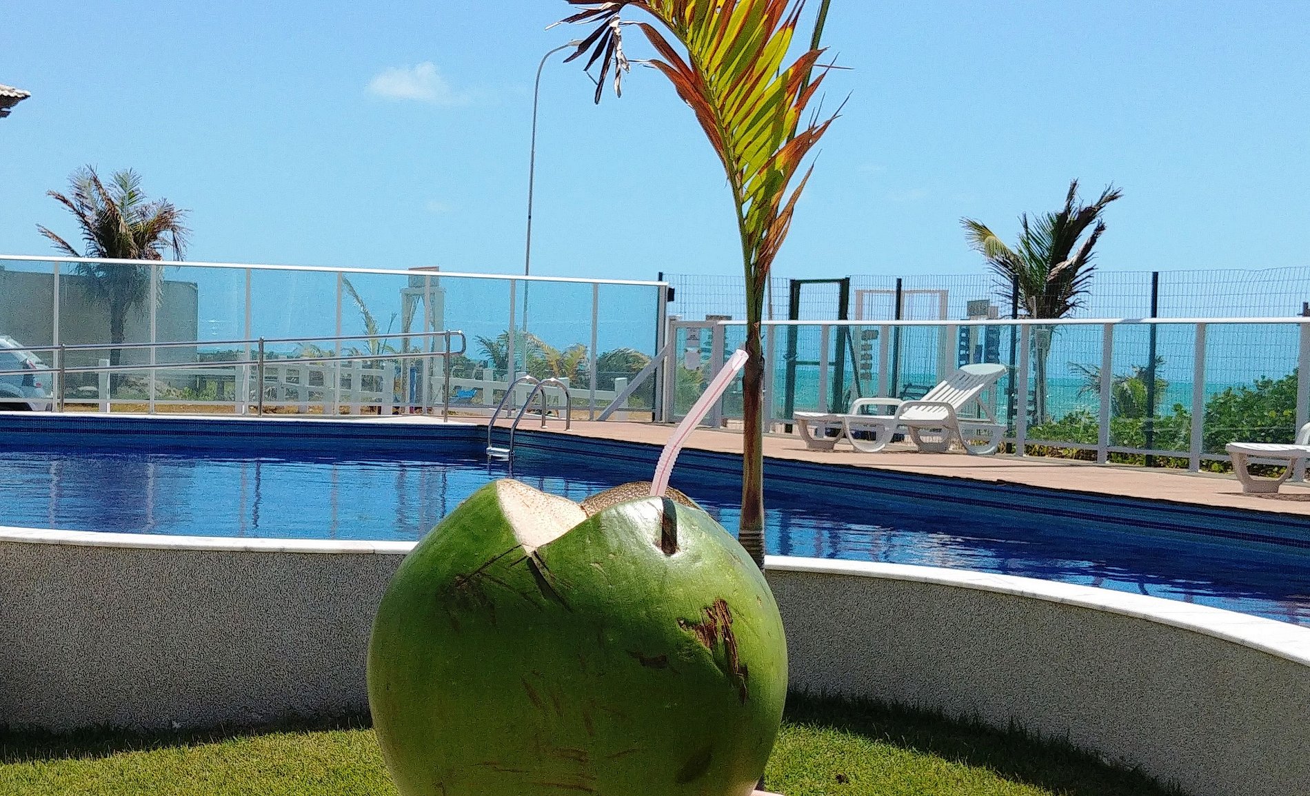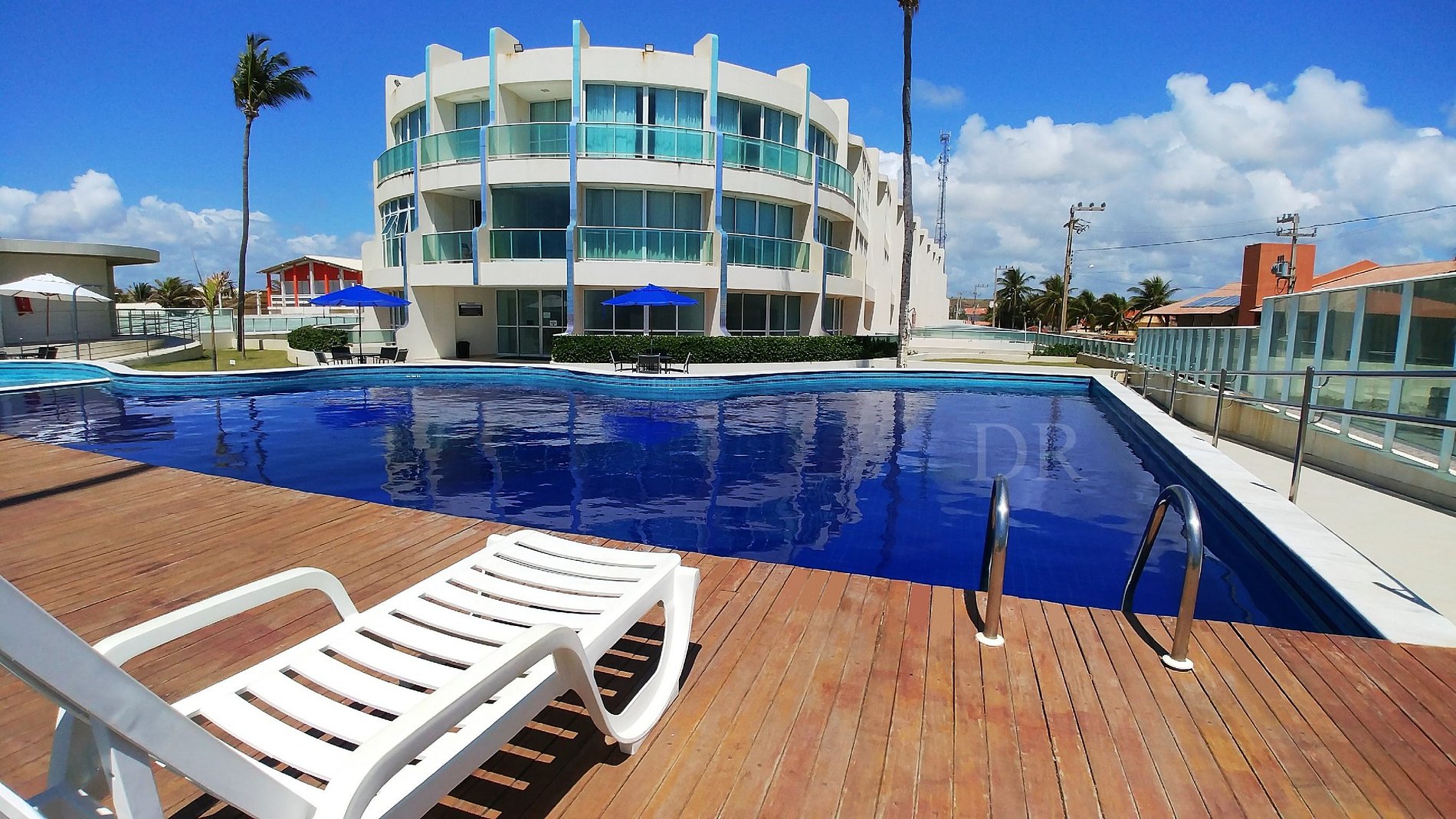 Dispomos de uma linda piscina de frente ao mar, jardins e área de lazer para pratica de esportes. O condomínio conta com área de churrasqueira, portaria 24h e garagem.