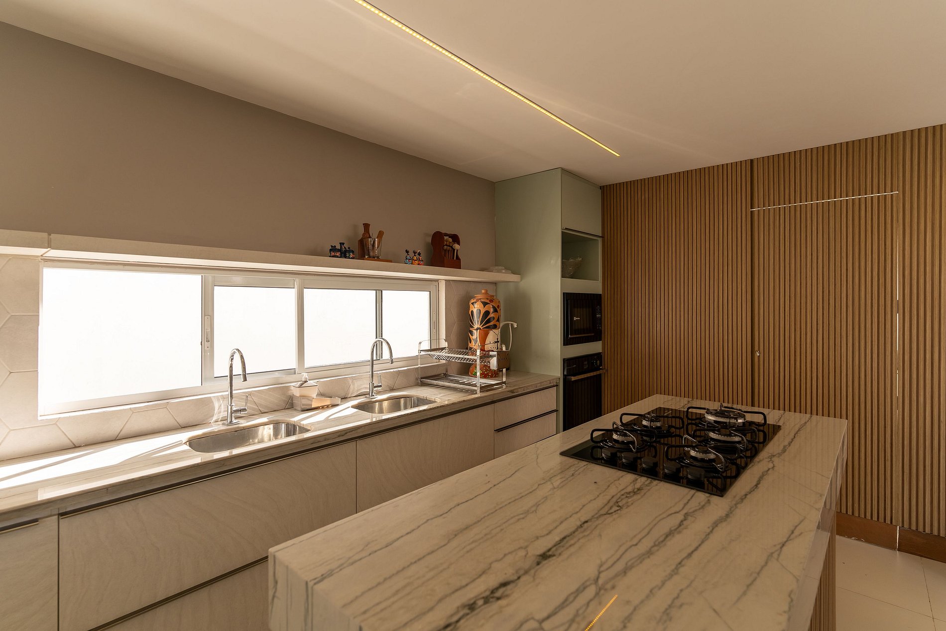 A área externa é o destaque: piscina integrada à área gourmet com churrasqueira, além de um terraço em madeira perfeito para relaxar. A casa é bem arejada e agradável, proporcionando um ambiente acolhedor e descontraído.