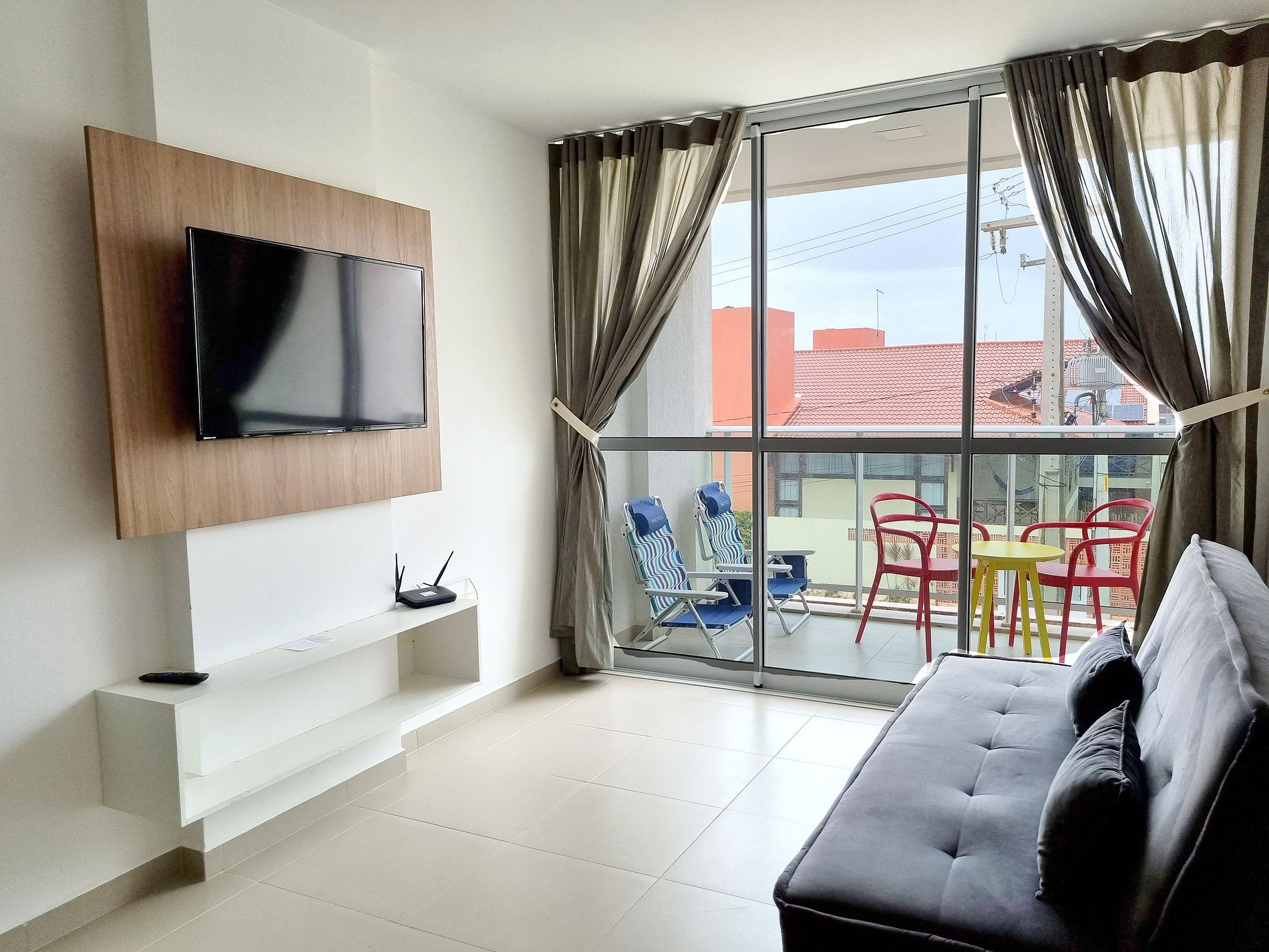 Apartamento com mobiliário novo, varanda e uma bela vista para o mar.