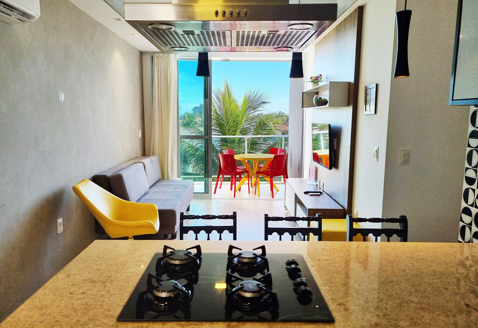 Apartamento confortável, dispondo de mobiliário novo e uma moderna decoração.
