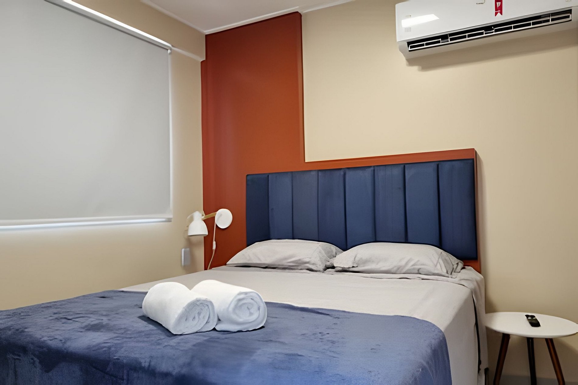 Com uma decoração moderna e acolhedora, o apartamento conta com uma cama queen size mais uma cama solteiro inferior, TV, Ar-Condicionado, banheiro privativo e uma cozinha equipada, ideal para quem deseja maior independência durante a viagem.